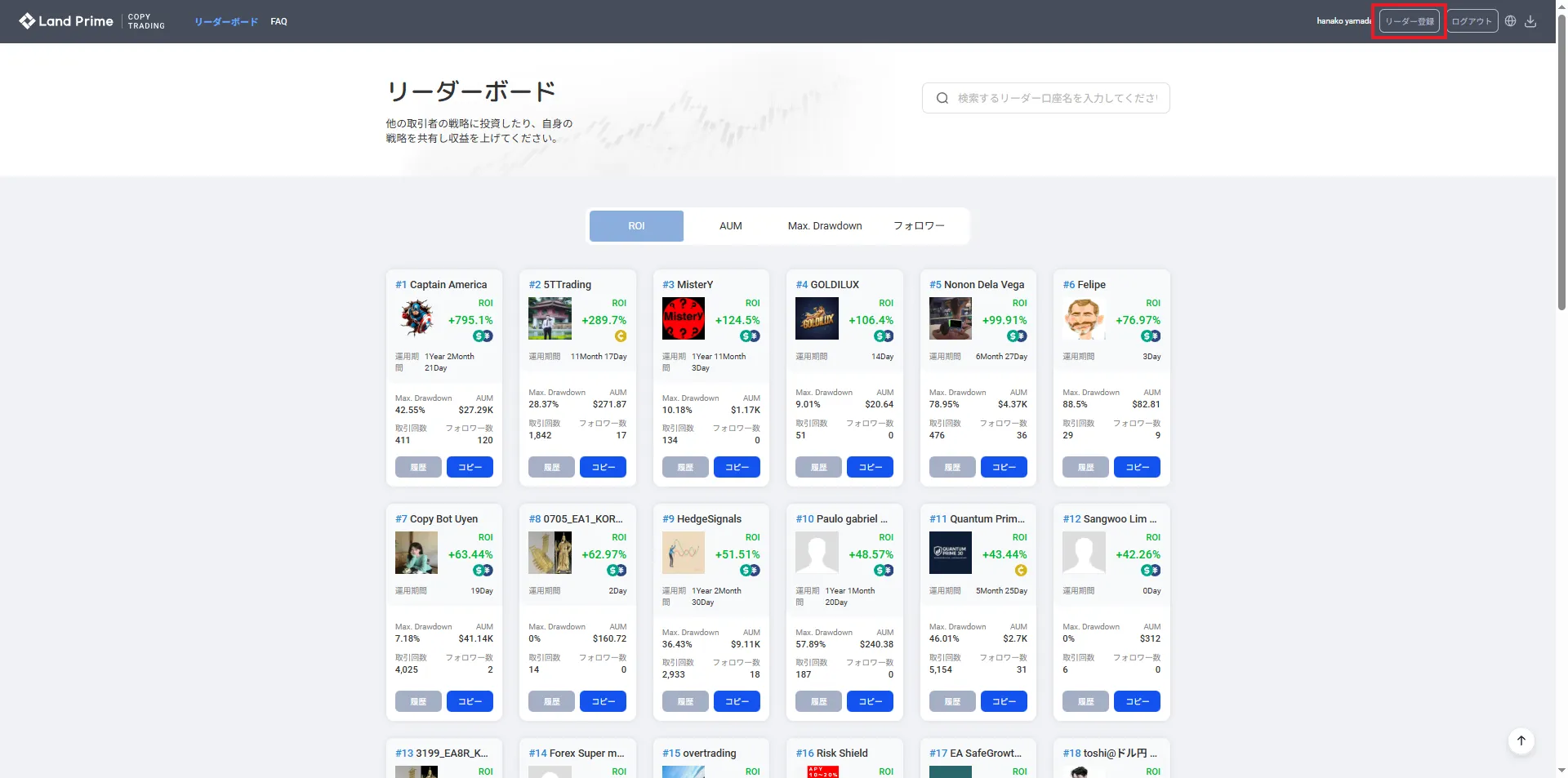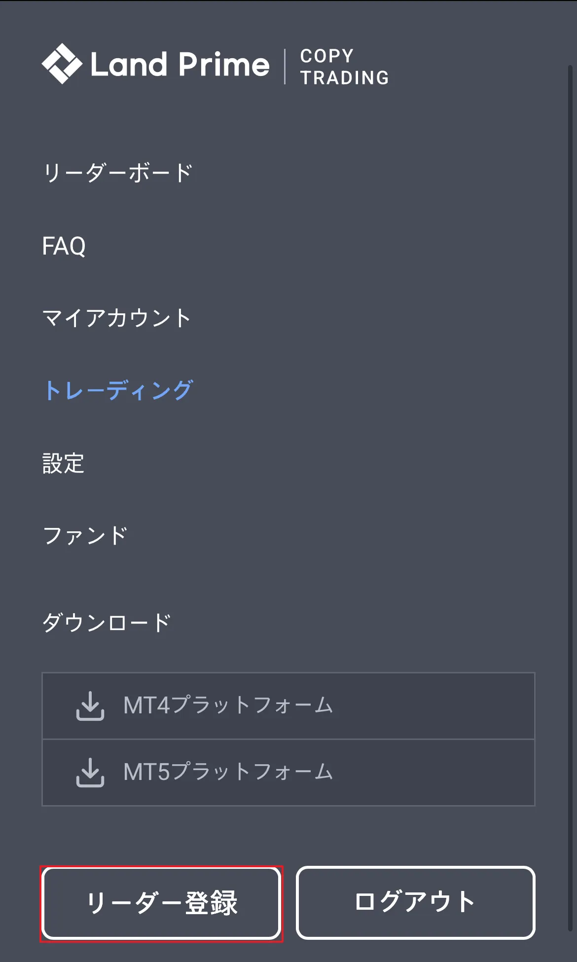 リーダー口座はダッシュボード右上リーダー登録をクリックすることで開設が可能です