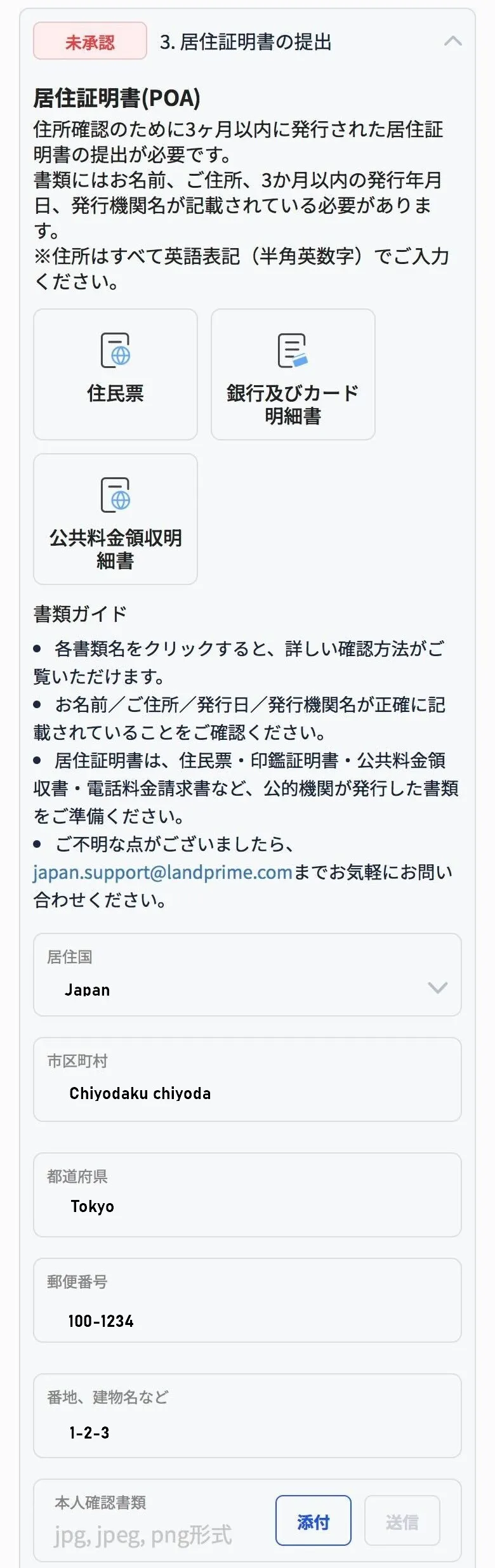 POA(居住証明書)提出