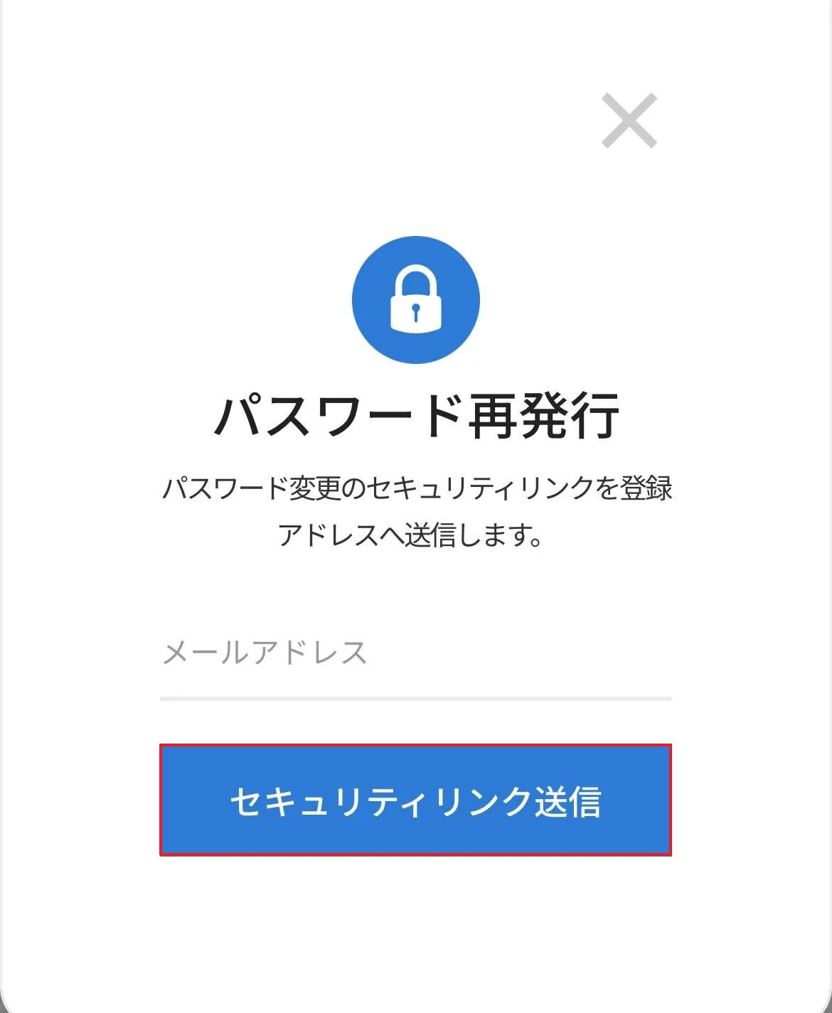 登録メールアドレスを入力してセキュリティリンクを送信をクリック