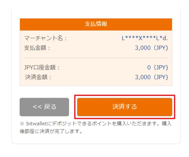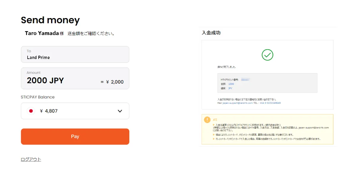 <Pay>をクリックすると入金が完了します