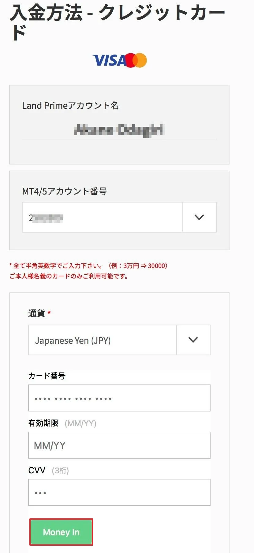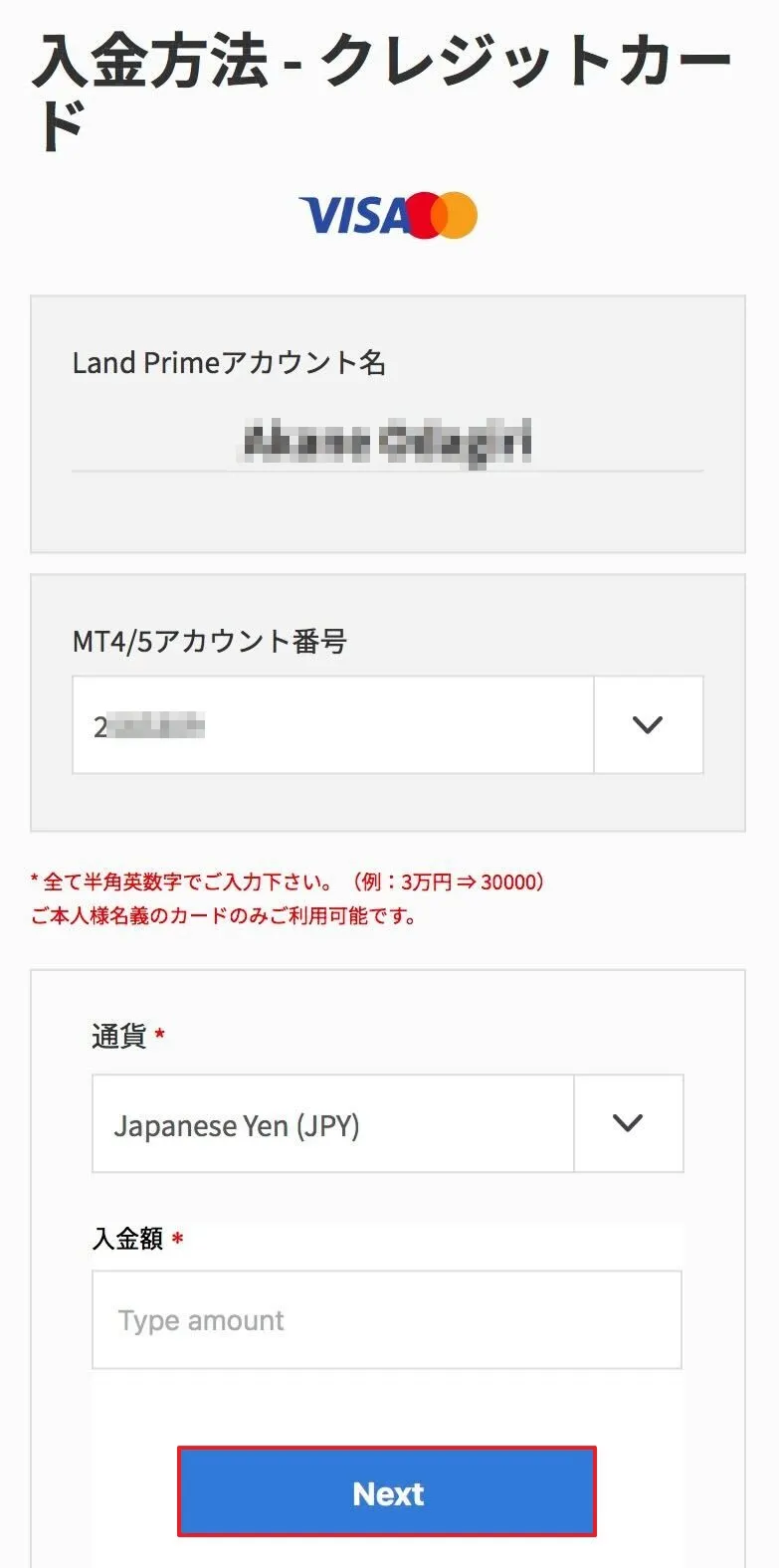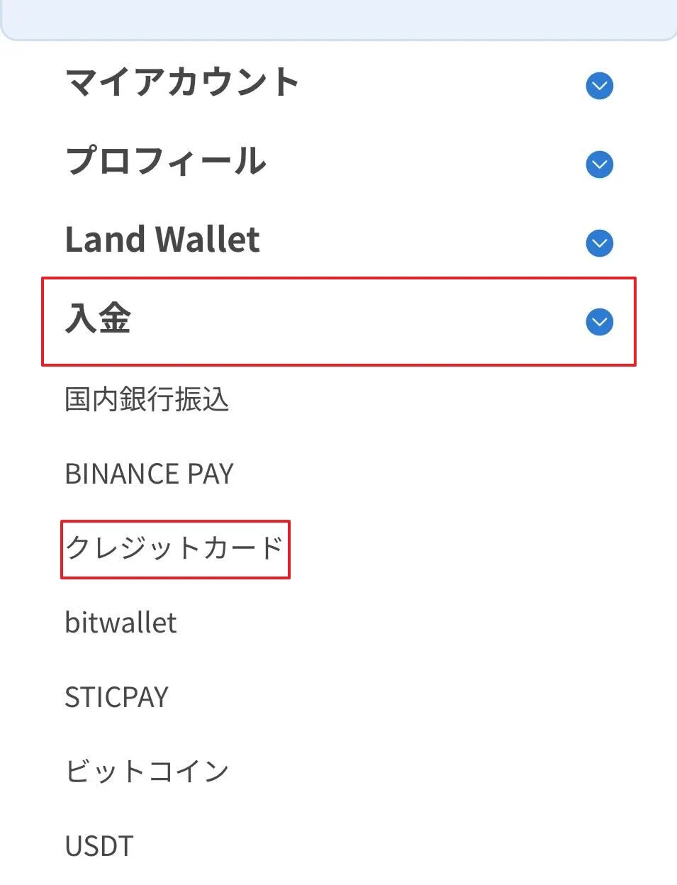 2.クレジットカード入金