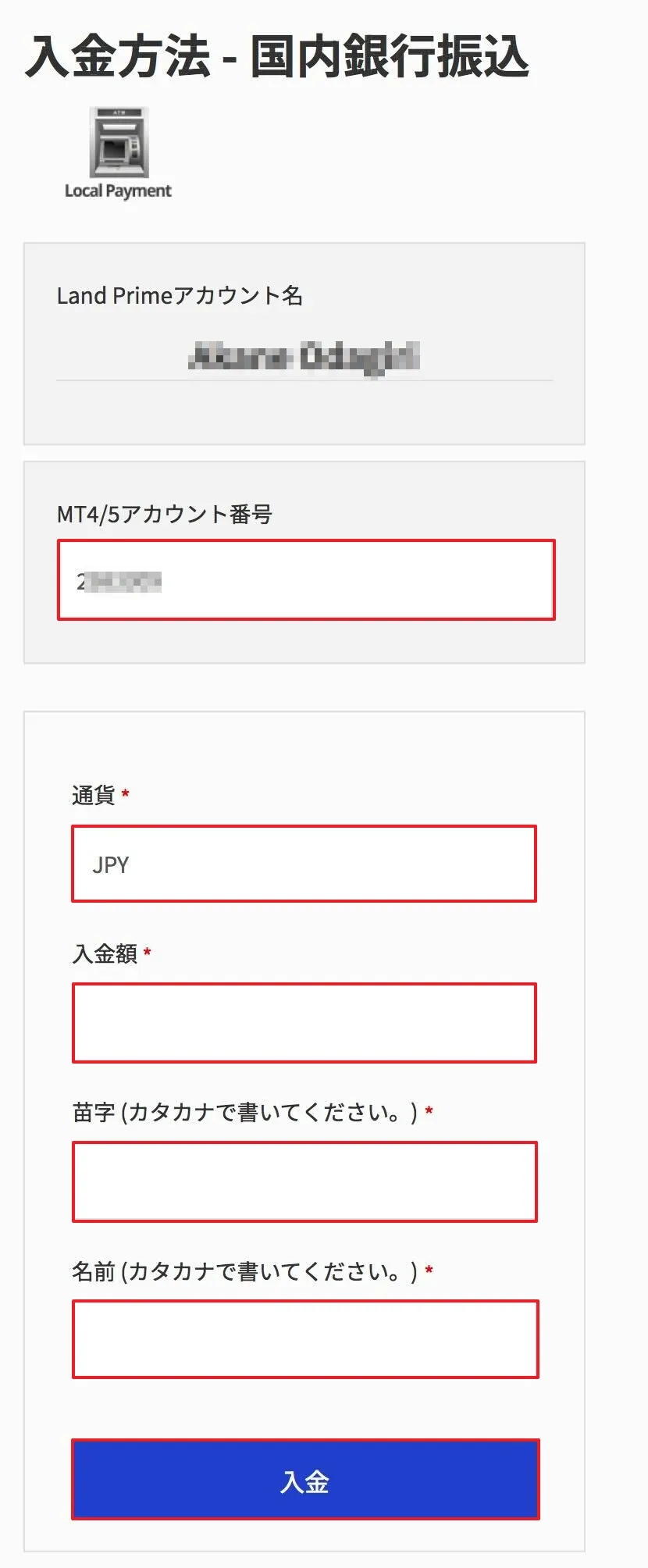 入金をお願いします