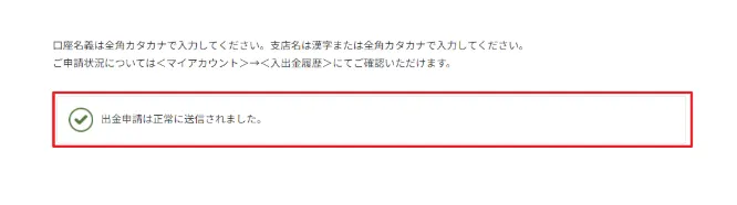 ご申請を多数頂戴している場合や、出金代行会社での処理状況によっては遅延が生じる可能性もございます。