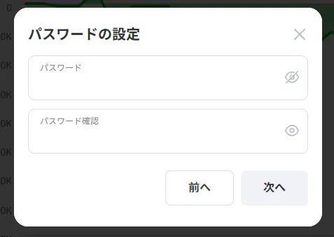必要事項を選択し、次へをクリックすると取引口座のパスワード設定画面が表示されます。
