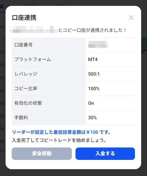 パスワードの設定まで完了したらコピー口座の開設が完了です