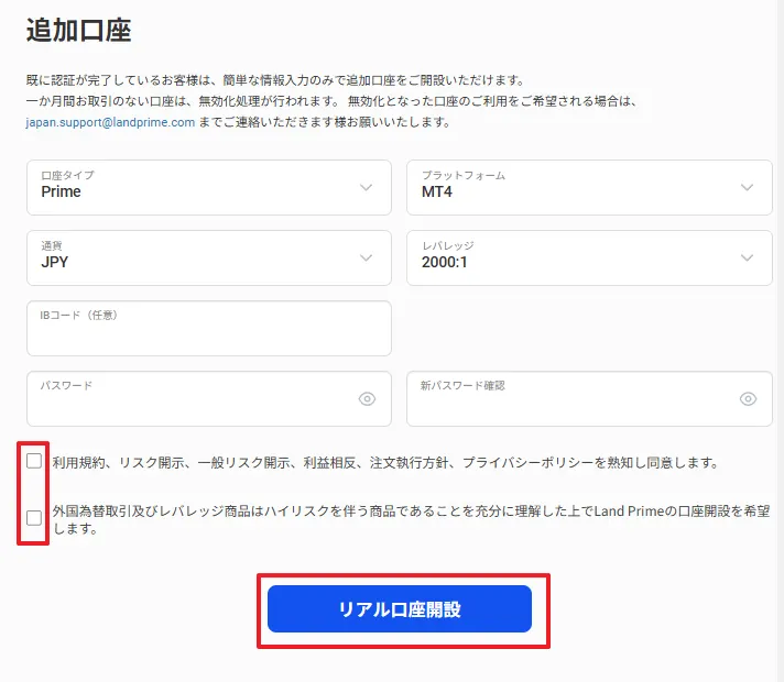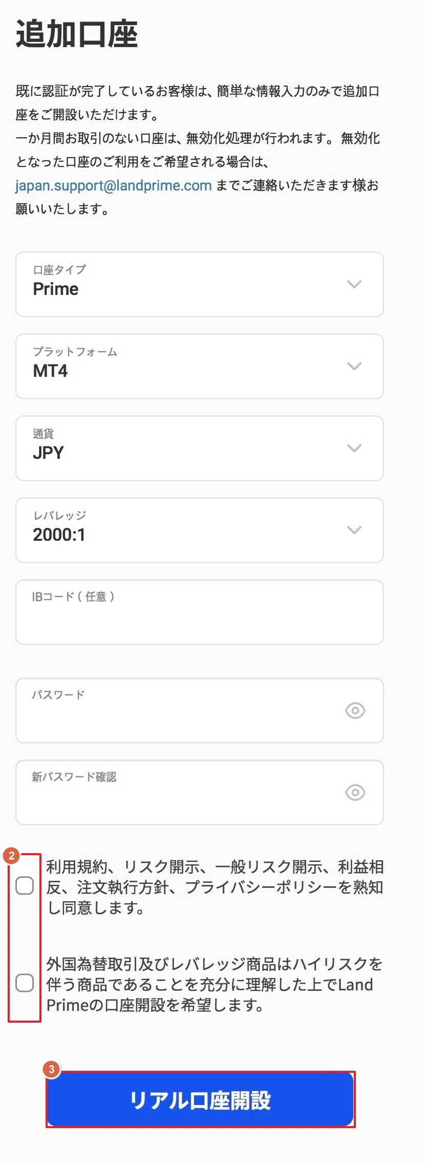 ここで入力するパスワードは、 口座開設後にMT4/5にログインする際に 必要なパスワードです。