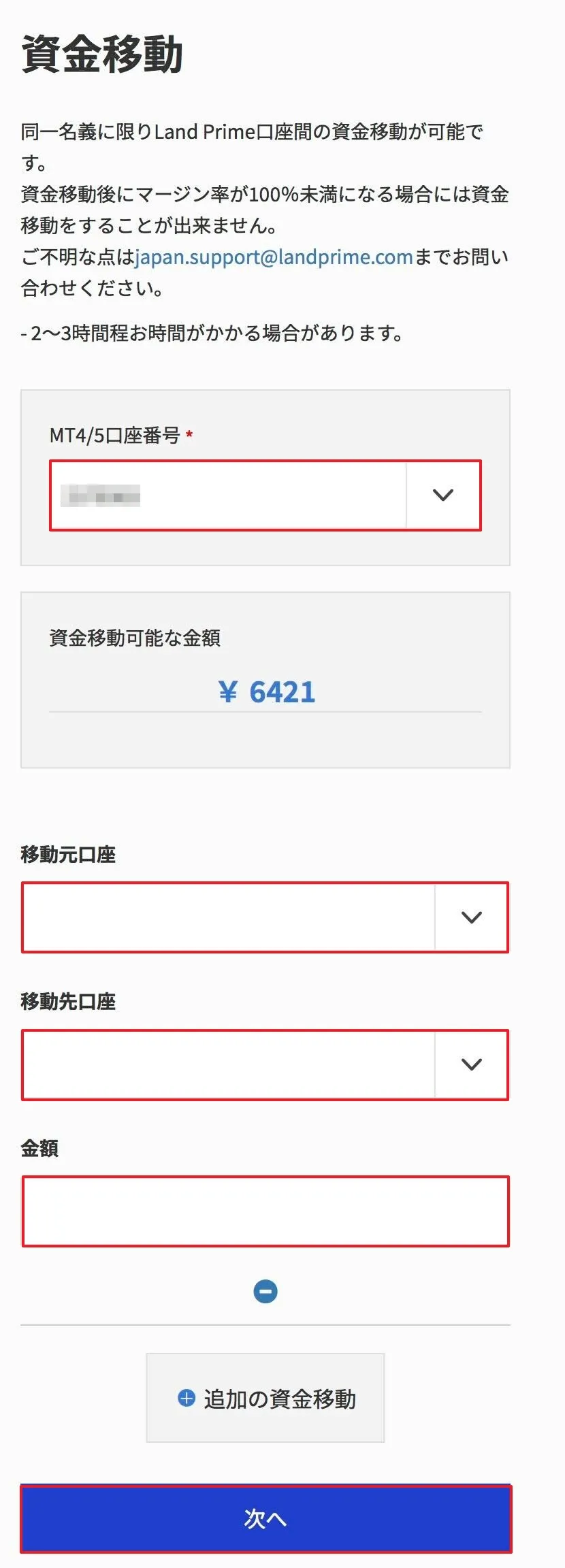 資金移動後マージン率が100%未満の場合 資金移動は出来ません