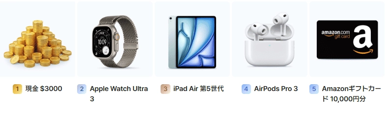 1等〜5等の賞品抽選に参加できます。